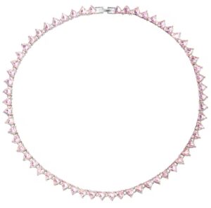 Colar Riviera Coração Rosa Prateado