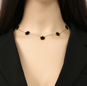 Colar Trevo Preto Dourado