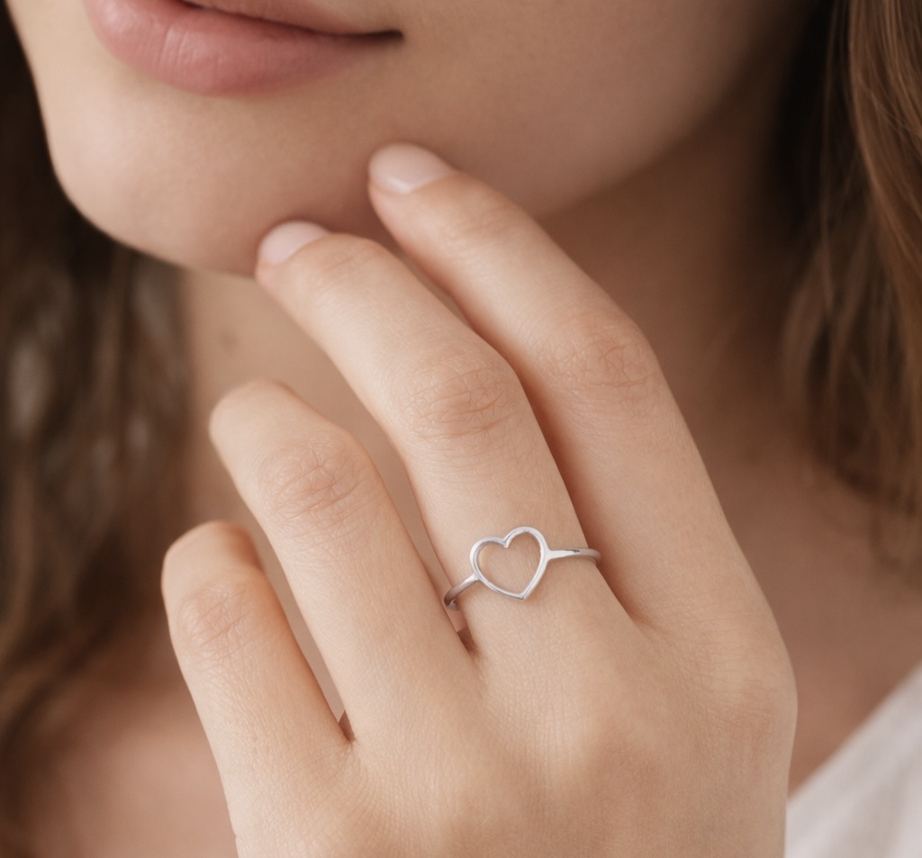 Anel minimalista em prata 925, com design de coração que encanta à primeira vista. Uma joia leve, elegante e perfeita para combinar com tudo — assim como você.